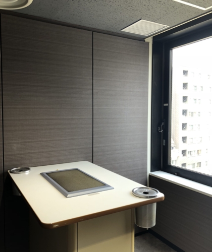 施工事例 top > 施工事例 > テーブルマーク株式会社 様 施工日2018年7月6~9日・14日 業種オフィス 会社名テーブルマーク 仕様屋内喫煙室 種別リニューアル コメント天井塗装、壁クロス貼替え、ダイノックフィルム貼、耐シガレットタイル貼、換気設備工事施工