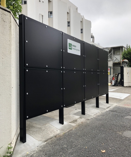 施工事例 top > 施工事例 > 某企業 様 施工日2019年8月27日~31日 業種オフィス 会社名某企業 様 仕様屋外喫煙室 種別新規施工 コメント正門前・西門前の既存屋外喫煙場所の移設と新規パーテーション設置
